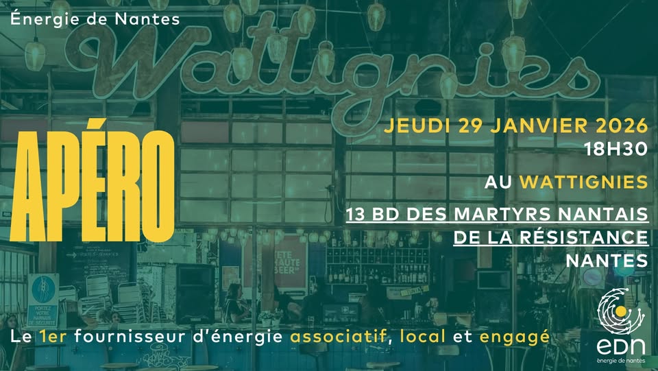 Chaque mois, EDN organise un apéro. Que ce soit pour garder le lien, discuter des actualités ou découvrir comment est-ce qu’on se réapproprie l’énergie, tout le monde est bienvenu ! Et pis l’idée, c’est tout simplement de passer un chouette moment ensemble.
