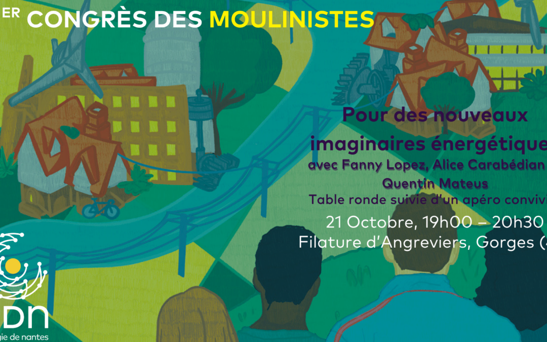 Dans le cadre du congrès des moulinistes des 21 et 22 octobre et après une exploration du passé énergétique et de l’histoire des moulins l’après-midi, on se retrouve pour la 2ème table-ronde de la journée avec Fanny Lopez (historienne des infrastructures), Alice Carabédian (autrice de BD de science fiction et d’Utopies radicales) et Quentin Mateus (lowtech Lab). A leurs côtés nous explorerons cette fois le présent et les nouveaux imaginaires que nous commençons déjà à mettre en place ! Finalement, pourquoi EDN veut remettre les moulins en mouvement ?